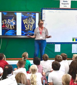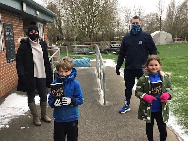 Thanks to Covid, this is a socially distanced book delivery of a stack of Eternal Seas books, ready for Sidlesham Primary School’s next class read.
