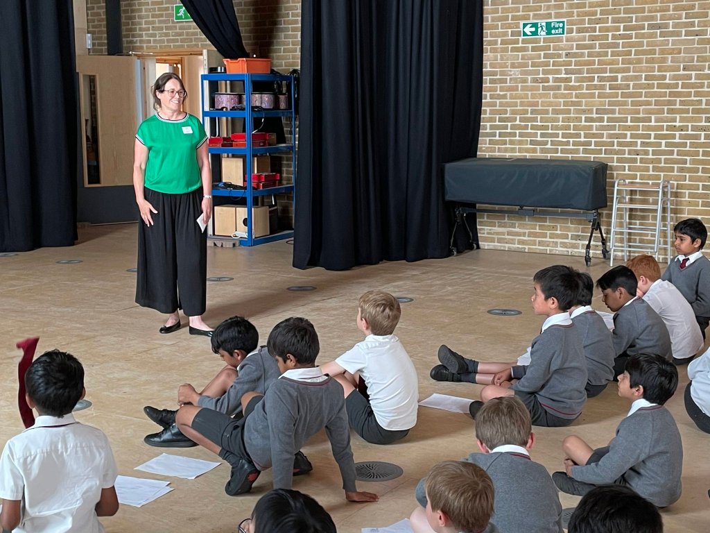 After our Polka Theatre creative writing event, poet Kimba and I found ourselves back as a double act doing author visits at Woodmansterne Primary School. I was working with Key Stage 2 (KS2) whilst Kimba was with KS1. There were some really good qs during the assembly, including about writing software (I use Scrivener) which the Deputy Head later told me was asked by a boy who would never normally speak up so she was particularly delighted that he was so engaged. I loved being interviewed over lunch – looking forward to seeing the article in the school newsletter!
