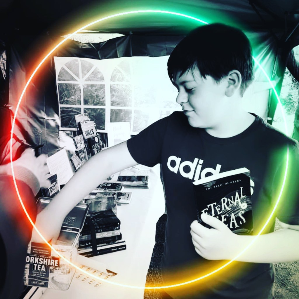 Book signing at The Maze Garden, Sidlesham annual charity event – torrential rain thankfully cleared and the crowds arrived! Love this pic of a young visitor drawing the raffle prize whilst clutching a copy of Eternal Seas 🙂
