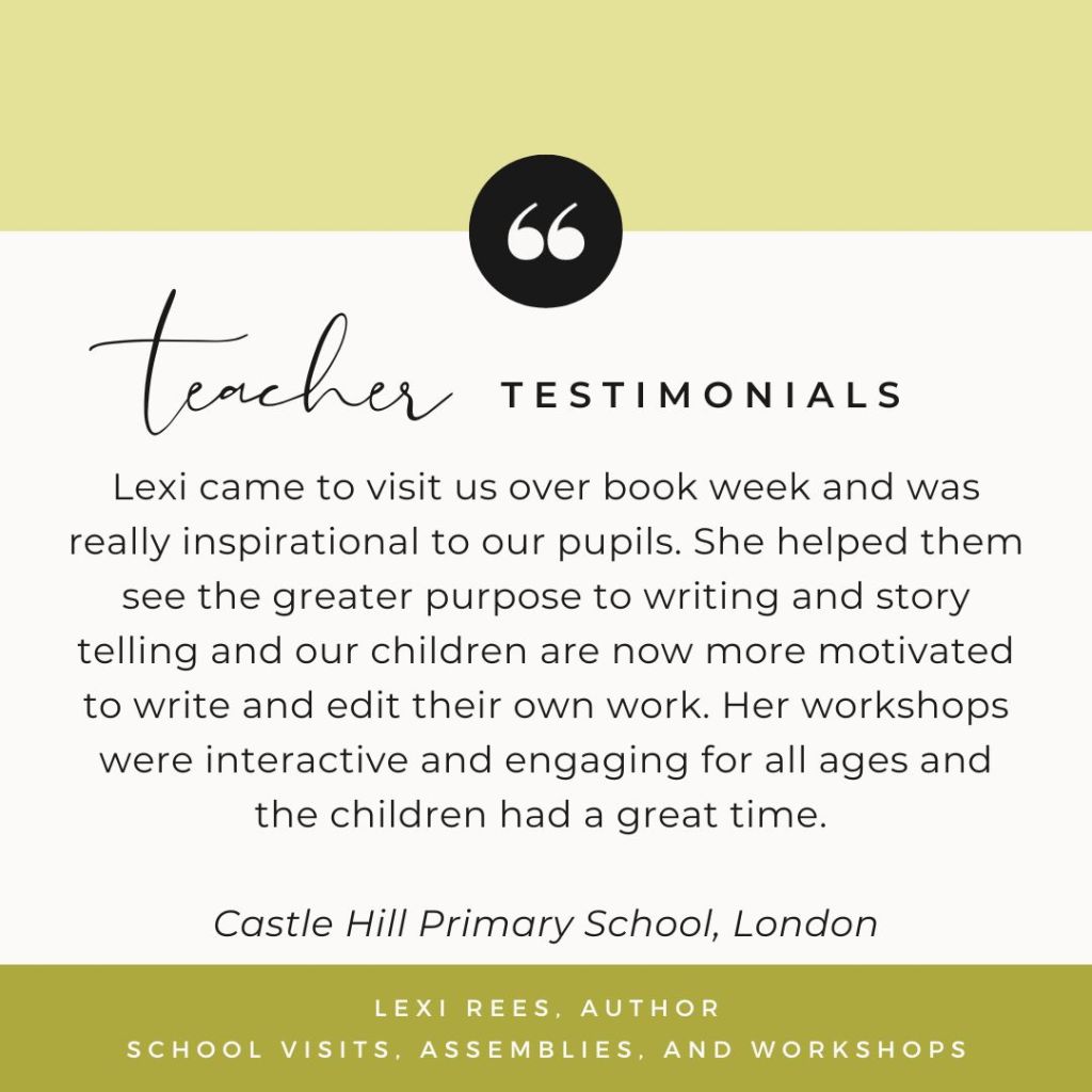 I regularly visit schools, libraries, bookshops, and literary festivals. My events are always interactive and with memorable activities and lots of content that the teachers can refer back to in class. I offer a wide range of in-person and online assemblies, workshops, and enjoy a chatty Q&A/ panel discussion!